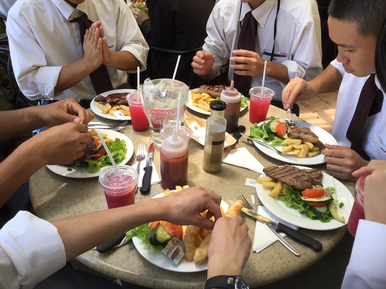 夜はゴールドコースト市内のホテルに宿泊です。困ったときは、英語でホテルスタッフに質問です。生徒たちのドキドキ楽しそうな表情が印象的でした。 夕食はビュッフェスタイルです。