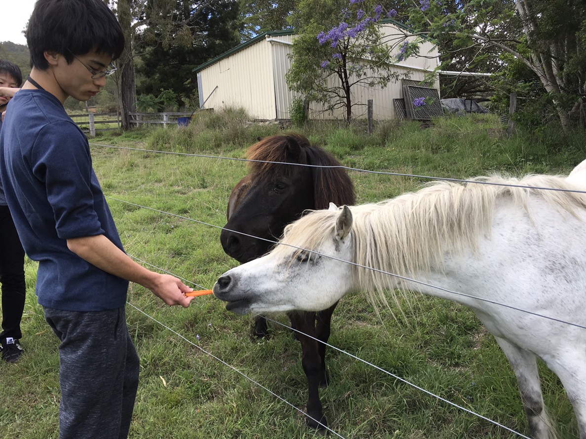 生徒たちはファームステイを満喫しています。広大な敷地や、そこで悠々と暮らしている動物たちと触れ合います。