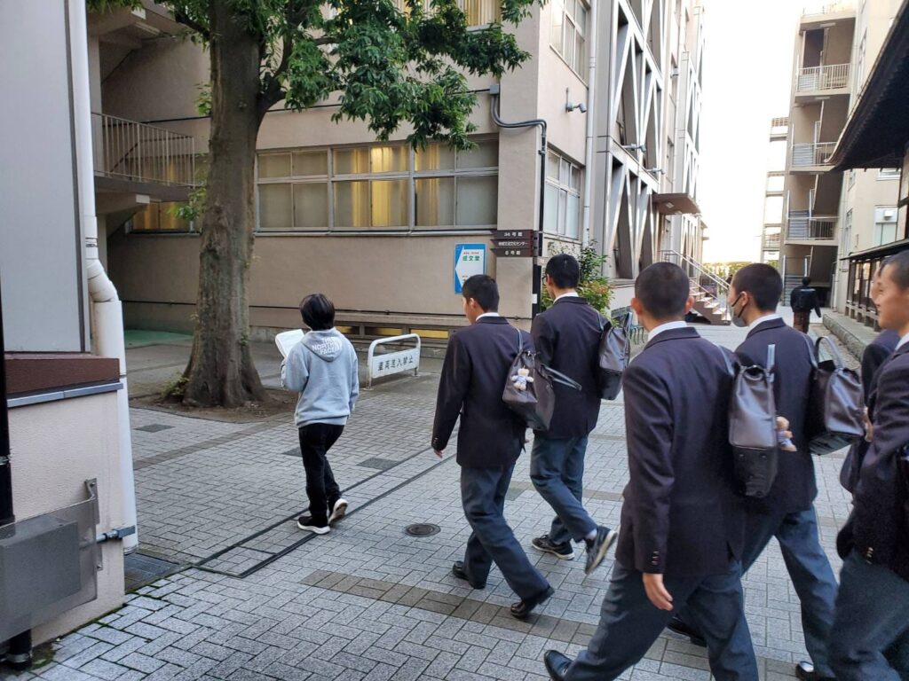 午前中は上智大学に全員で行きました。10人ほどのグループに分かれて、キャンパス内の見学や、大学説明を聞きます。初めて大学という場に足を踏み入れた生徒も多く、大きな印象を胸に刻んでいるようでした。