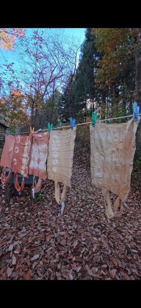 草木染は、模様の出来上がりを想像しながらの作業。初めての染め物にワクワクしながら取り組んでいました。