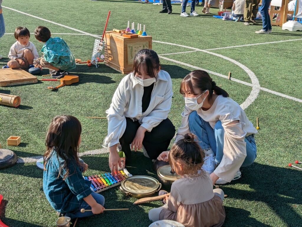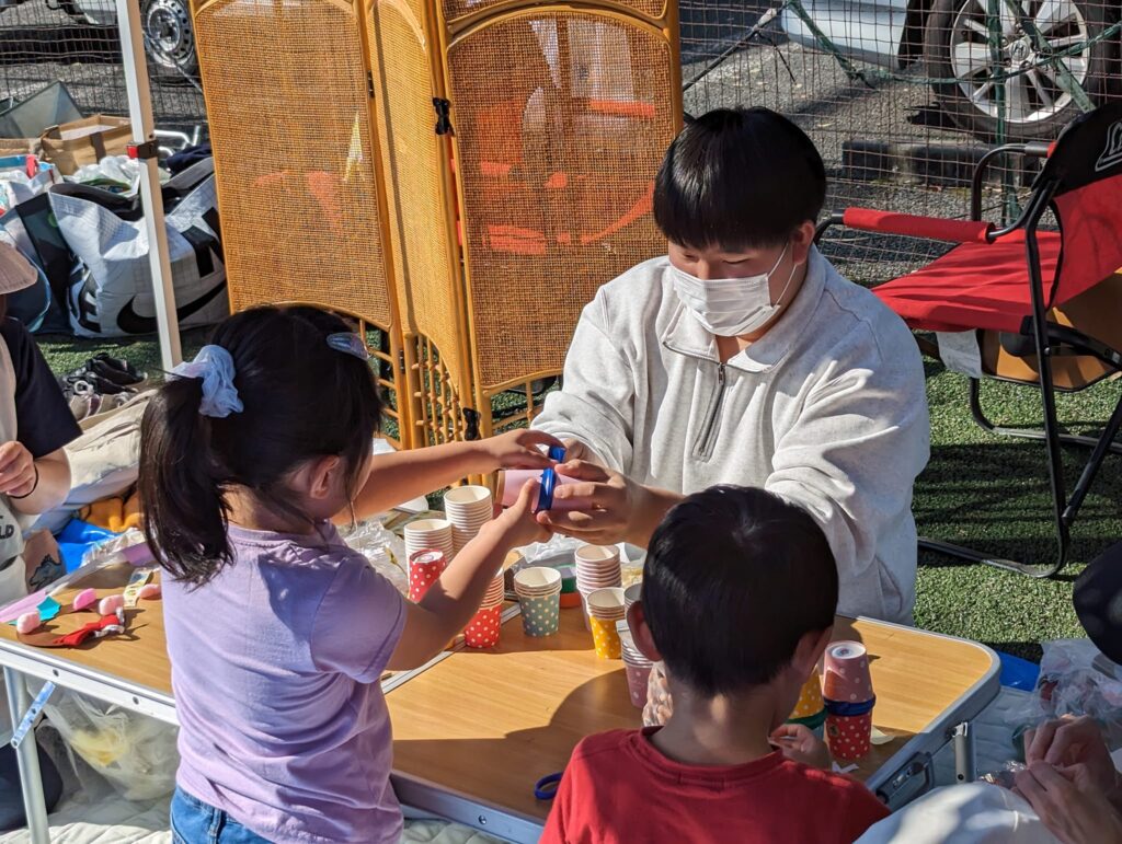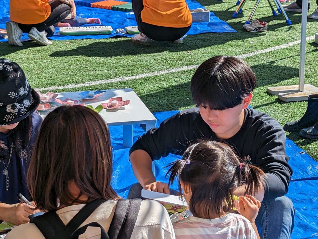 様々なブースで、キャリプロの生徒達もボランティアで参加。子どもたちと工作をしたり、遊びの見守りをしています。