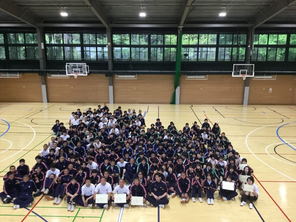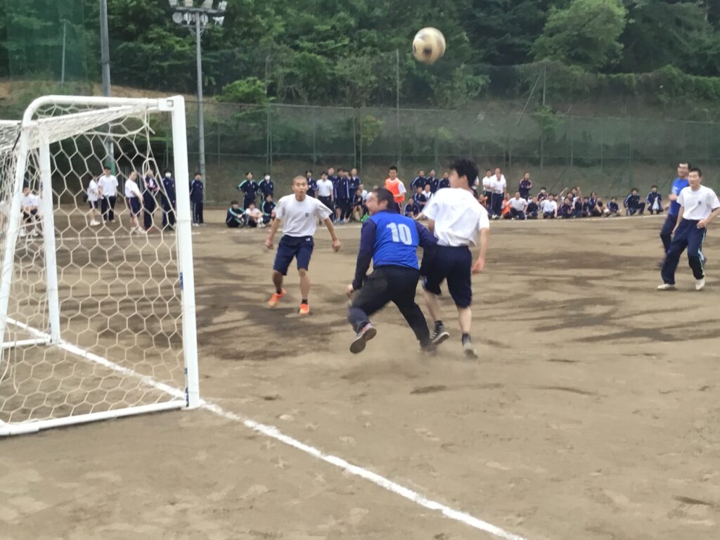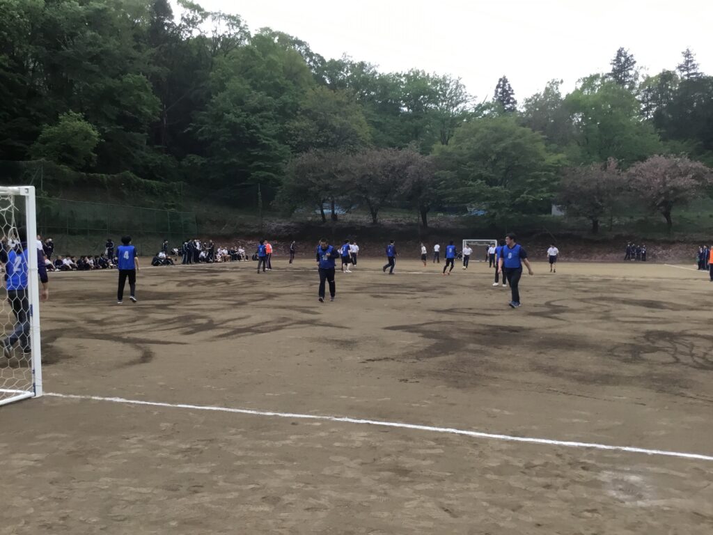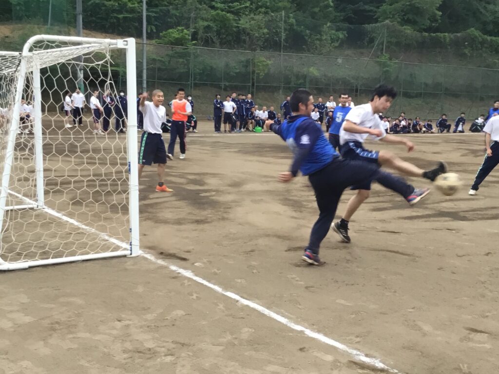 1年生から3年生までが縦割りチームとなり、男子はグラウンドでサッカー、女子は体育館でバスケ。
