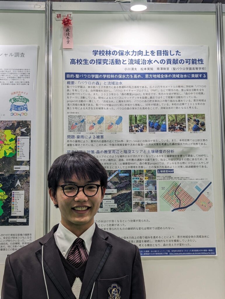 この取り組みをまとめたポスターを「グリーンインフラネットワーク・ジャパン全国大会」に出展したところ、「研究者・学生部門」で最優秀賞を受賞することができました。この受賞を機に、様々な大学の先生方や地域の方々に注目していただき、タウン誌などで何度も活動を取り上げていただくことができました。探究活動が地域社会に広がり、評価されたことは、何にも代えがたい経験となりました。