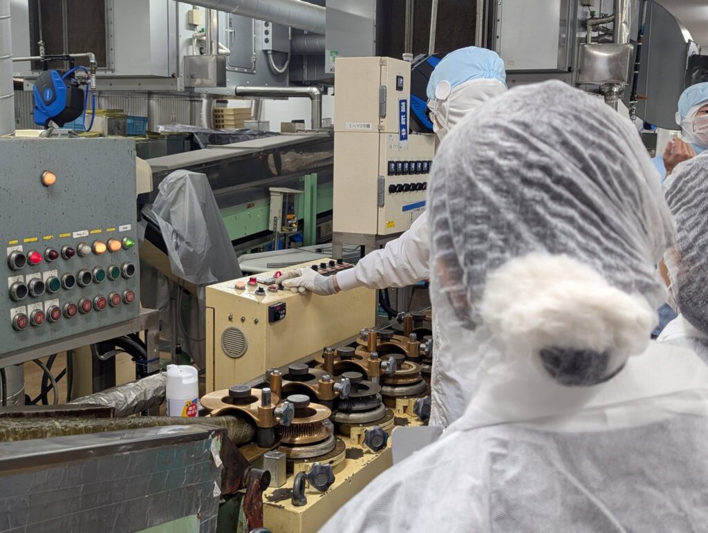 工場も、飴や生菓子のラインを見学しましたが、過程のすべてが興味深く、くぎ付けになりました。機械作業と手作業により成り立っていることも興味深いポイントでした。