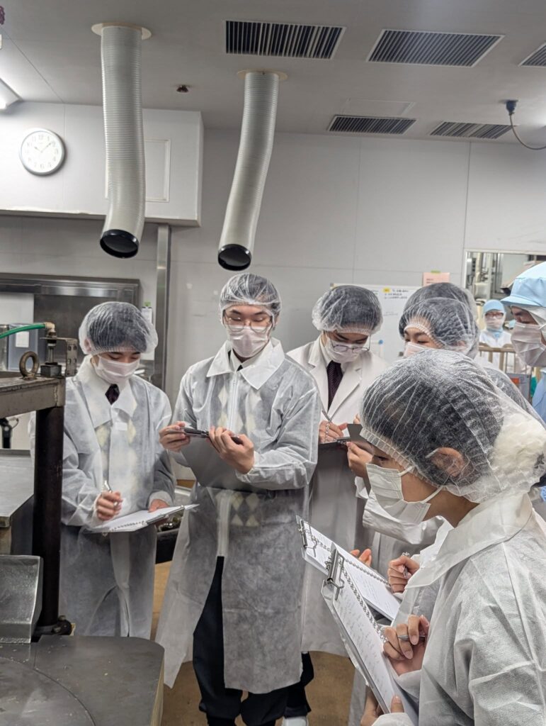2学期に家庭科の授業の一環で、細田社長にお話をしていただいたり、いただいた餡で白玉しるこを作ったご縁からの、今回の見学。