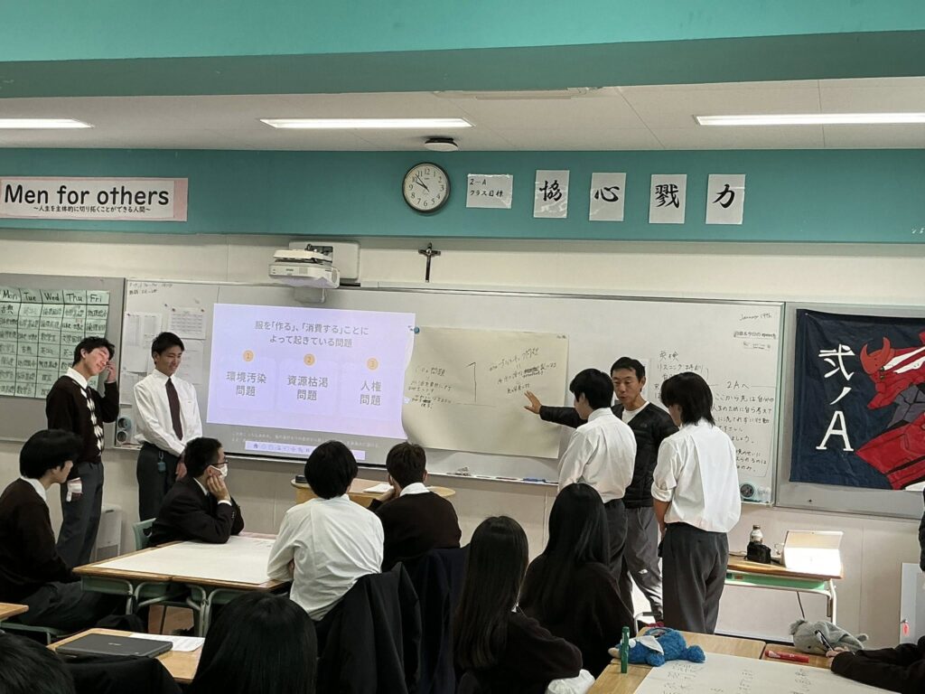 生産の過程や服を取り巻く環境の中で何が問題なのかをお話いただき、自分たちなりの解決策を考えます。