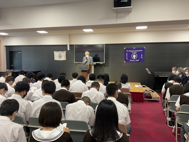 本校では毎年1学年の宗教の授業の初回に聖書が手渡され,講話を聴きます。
