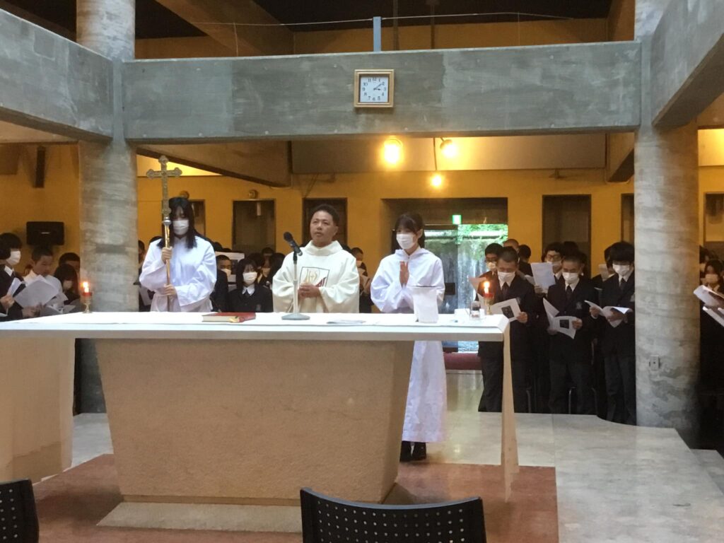 サレジオ会司祭で、サレジオ小学校・中学校の校長でいらっしゃる北川純二神父様に司式をしていただき、4年ぶりに聖堂でのミサを行いました。