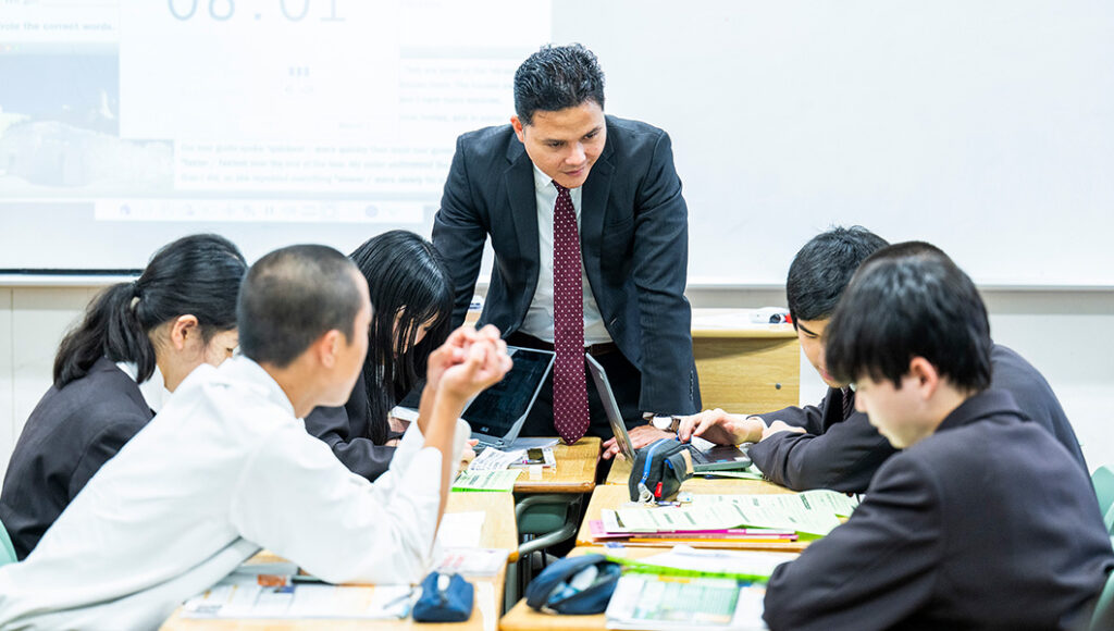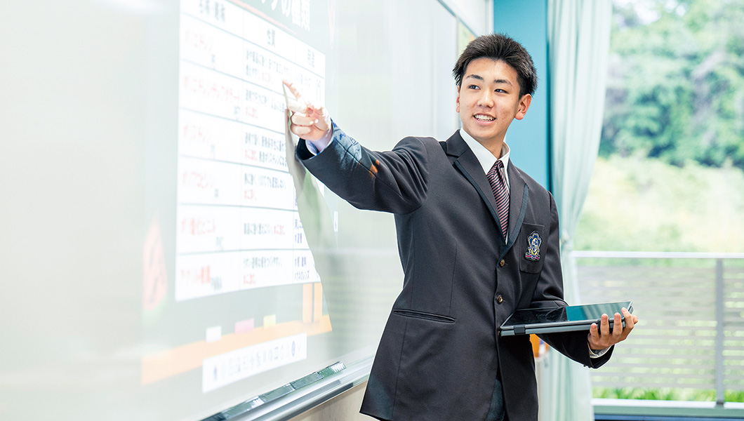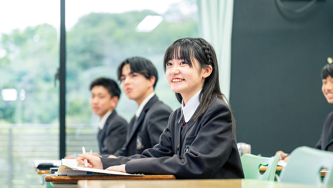 グローバル教育を多く取り入れた学習プログラムをベースに、「世界の中の日本」を意識できる人材を育成するクラスです。世界で活躍するための第一歩は、“英語力の育成”です。英語を学ぶのは授業だけに限らず、日常的なネイティブ教員との交流を始めとして、British Hillsでの英国体験学習や海外留学・語学研修、海外修学旅行などの体験を重視した行事でも行われます。英語を得意科目にできると、「やればできる」という自信がつき、他教科へも学習意欲が広がります。総合的な学力を身につけ、高い進学目標へ立ち向かっていきます。