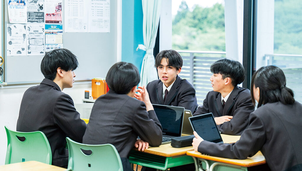9:25からのゆとりあるカリキュラムの中で生徒たちは主体的に学び、考える力を養っていきます。そしてさまざまな体験・挑戦で培った総合的な学力や経験をもとに進路の選択肢を広げながら、一人ひとりの夢の実現に向けて高校生活を過ごします。また学校推薦型選抜・総合型選抜など多様な入試形態に対応できるよう、本校独自のメンター制を活かしながら日々の学習・生活は一人ひとりに目を向けて丁寧に指導します。多彩な取り組みから自分自身が深めたい学問や目指したい分野を発見できるクラスです。